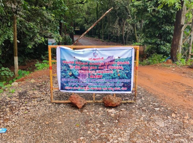 ಉತ್ತರ ಕನ್ನಡ ಜಿಲ್ಲೆಯ ಪ್ರಸಿದ್ಧ ಪ್ರವಾಸಿ-ಪುಣ್ಯ ಕ್ಷೇತ್ರಗಳಲ್ಲಿ ಒಂದಾದ ಯಾಣಕ್ಕೆ ಪ್ರವಾಸಿಗರ ಪ್ರವೇಶಕ್ಕೆ ತಡೆ ಒಡ್ಡಲಾಗಿದೆ. ಭಾರೀ ಪ್ರಮಾಣದ ಮಳೆ ಹಿನ್ನಲೆ ರಸ್ತೆಗೆ ಅಡ್ಡಲಾಗಿ ನಿಷೇಧದ ನಾಮಫಲಕ ಅಳವಡಿಸಲಾಗಿದೆ.