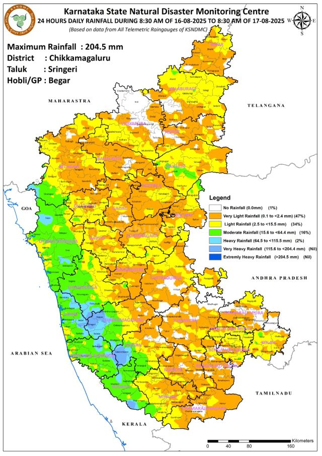 ಭಾರತೀಯ ಹವಾಮಾನ ಇಲಾಖೆ ಹಾಗೂ ರಾಜ್ಯ ನೈಸರ್ಗಿಕ ವಿಕೋಪ ಉಸ್ತುವಾರಿ ಕೇಂದ್ರದವರು ಅಗಸ್ಟ 19ರವರೆಗೂ ಮಳೆಯಾಗುವ ಬಗ್ಗೆ ಮಾಹಿತಿ ನೀಡಿದ್ದಾರೆ. ಬಂಗಾಲ ಕೊಲ್ಲಿಯಲ್ಲಿ ವಾಯು ಭಾರ ಕುಸಿತವಾಗಿದ್ದರಿಂದ ಚಂಡಮಾರುತ ಬೀಸುವ ಸಾಧ್ಯತೆ ಹೆಚ್ಚಿದೆ. ಈ ಹಿನ್ನಲೆ ಜಿಲ್ಲೆಯಲ್ಲಿ ರೆಡ್ ಅಲರ್ಟ ಘೋಷಿಸಲಾಗಿದೆ.