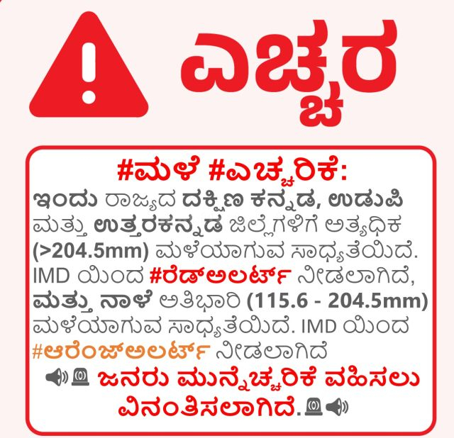 ಕರಾವಳಿ ಭಾಗದಲ್ಲಿ ಮಳೆ ಅತ್ಯಧಿಕವಾಗಿದೆ. ಮಲೆನಾಡು ಪ್ರದೇಶದಲ್ಲಿಯೂ ನಿರಂತರ ಮಳೆ ಸುರಿಯುತ್ತಿದೆ. ನದಗಳೆಲ್ಲವೂ ಅಪಾಯದ ಅಂಚಿನಲ್ಲಿ ಹರಿಯುತ್ತಿದ್ದು, ಸಮೀಪ ಹೋಗುವುದು ಕ್ಷೇಮವಲ್ಲ.