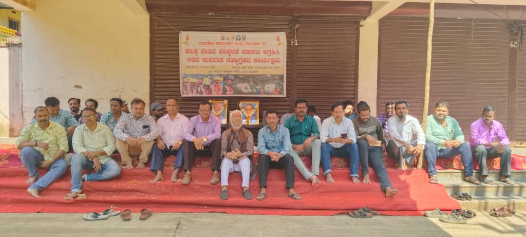 ಕನಿಷ್ಠ ವೇತನ ಪರಿಷ್ಕರಣೆಗಾಗಿ ಆಗ್ರಹಿಸಿ ದಾಂಡೇಲಿ ಕಾರ್ಮಿಕರ ಸಂಘದ ನೇತೃತ್ವದಲ್ಲಿ ನಗರದ ಕಾರ್ಮಿಕ ನಿರೀಕ್ಷಕರ ಕಾರ್ಯಾಲಯದ ಮುಂಭಾಗ ಸರಣಿ ಉಪವಾಸ ಸತ್ಯಾಗ್ರಹ ಹೋರಾಟಕ್ಕೆ ಸೋಮವಾರ ಚಾಲನೆಯನ್ನು ನೀಡಲಾಯಿತು.