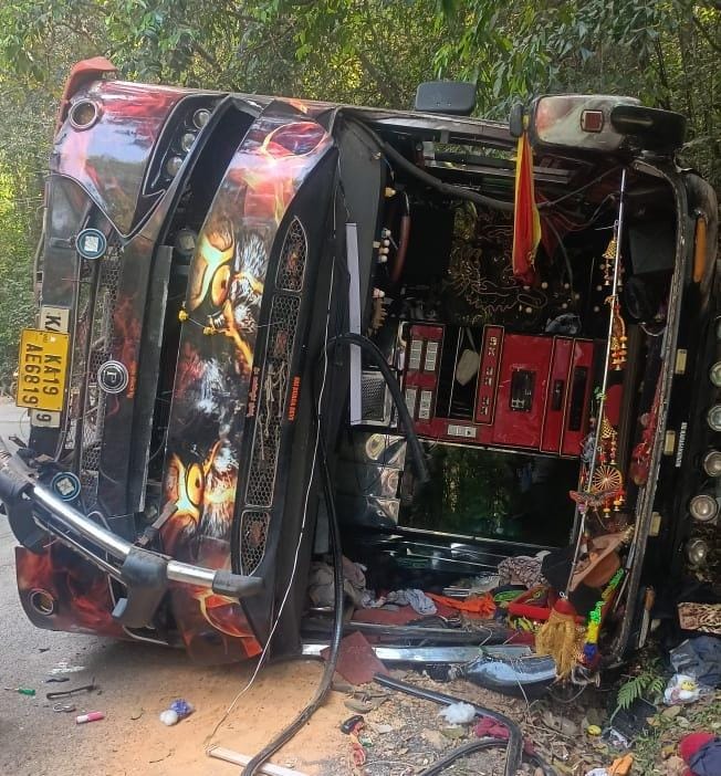 ಶಿರಸಿಯಿಂದ ಯಾಣ ಕಡೆಗೆ ತೆರಳುತ್ತಿದ್ದ ದಾವಣಗೆರೆಯ ಜೈನ್ ಪಿಯು ಕಾಲೇಜಿನ ವಿದ್ಯಾರ್ಥಿಗಳ ಬಸ್ ನಿಯಂತ್ರಣ ತಪ್ಪಿ ಪಲ್ಟಿಯಾಗಿದೆ. ಬಸ್ನಲ್ಲಿ ಒಟ್ಟು 50 ವಿದ್ಯಾರ್ಥಿಗಳು ಹಾಗೂ 3 ಮಂದಿ ಶಿಕ್ಷಕರು ಪ್ರಯಾಣಿಸುತ್ತಿದ್ದರು. ಇದರಲ್ಲಿ 20 ವಿದ್ಯಾರ್ಥಿನಿಯರು ಮತ್ತು 27 ವಿದ್ಯಾರ್ಥಿಗಳು ಸೇರಿದ್ದಾರೆ. ಅಪಘಾತದ ವೇಳೆ 12 ವಿದ್ಯಾರ್ಥಿಗಳಿಗೆ ಸಣ್ಣಪುಟ್ಟ ಗಾಯಗಳಾಗಿದ್ದು, ಅವರನ್ನು ಸ್ಥಳೀಯ ಆಸ್ಪತ್ರೆಗೆ ದಾಖಲಿಸಿ ಚಿಕಿತ್ಸೆ ನೀಡಲಾಗಿದೆ.