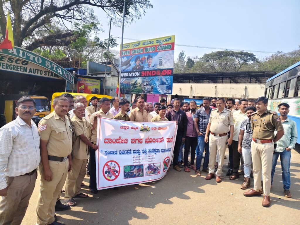 ದಾಂಡೇಲಿ : ನಗರ ಪೊಲೀಸ್ ಠಾಣೆಯ ಆಶ್ರಯದಡಿ ನಗರದ ಬಸ್ ನಿಲ್ದಾಣದ ಮುಂಭಾಗದಲ್ಲಿರುವ ಆಟೋ ನಿಲ್ದಾಣದಲ್ಲಿ ಆಟೋ ಚಾಲಕರಿಗೆ ಹಾಗೂ ಮ್ಯಾಕ್ಸಿಕ್ಯಾಬ್ ಚಾಲಕರಿಗೆ ರಸ್ತೆ ಸುರಕ್ಷತೆಯ ಕುರಿತಂತೆ ಗುರುವಾರ ಜಾಗೃತಿ ಕಾರ್ಯಕ್ರಮವನ್ನು ಹಮ್ಮಿಕೊಳ್ಳಲಾಯಿತು.